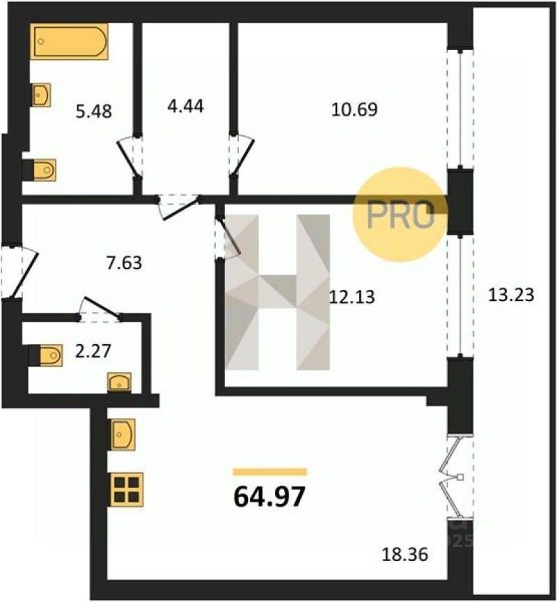 Квартира: 2 к 64,97 кв.м., 1 этаж в комплексе Включи, 5 очередь, корп.5, сдача: 1кв. , этажей: 7, адрес Гурьевск г., Героя России Катериничева ул., , Застройщик: ССК. Номер в базе: J31259L27277