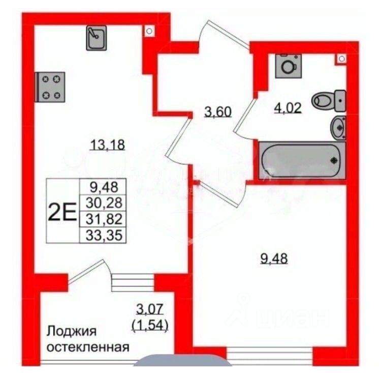 Квартира общей площадью 34 кв.м. Кухня правильной формы 13,5 кв.м. позволит разместить как рабочую зону. так и уголок для отдыха. Окна выходят на солнечную сторону.