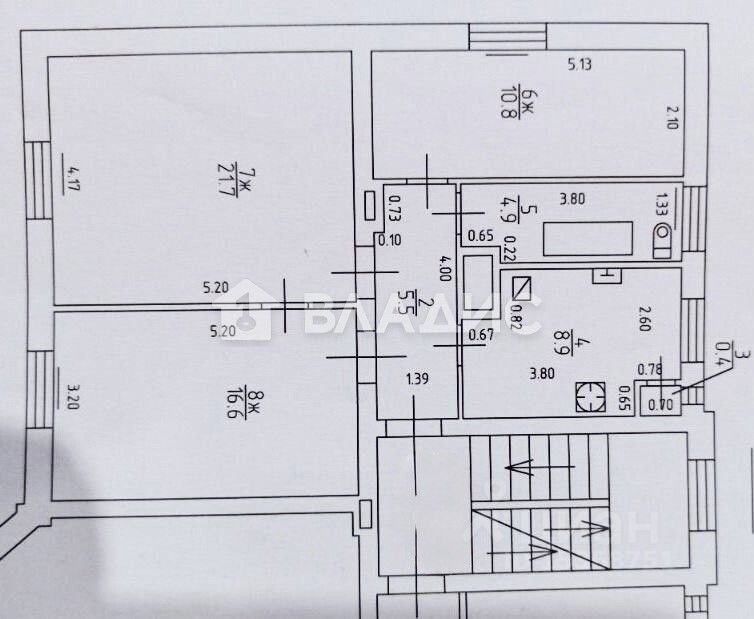 Второй этаж трехэтажного здания, построенного из красного керамического кирпича, с отреставрированным подъездом, крышей и новой электропроводкой. Скоро обновится фасад.