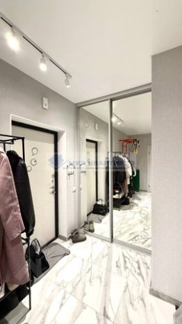 В квартире выполнен современный ремонт, натяжные потолки с точечным освещением, подогрев пола установлен везде, кроме спальной комнаты.