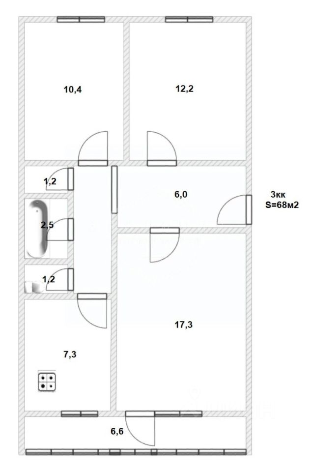 Просторная 3-комнатная квартира с продуманной планировкой.