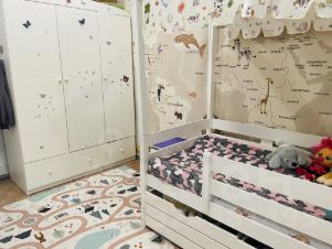 Для комфортного проживания установлены теплые полы в ванной, во всей квартире использовался качественный ламинат, матовый натяжной потолок с различными сценариями освещения, встроенная мебель и техника остается. Состояние - заходи и живи.