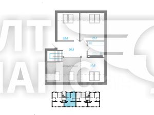 На втором уровне большой холл - 21.6 м2 со вторым светом на первый уровень, две комнаты и второй санузел - 4.8 м2.