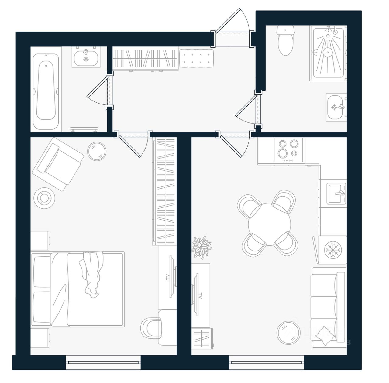 Однокомнатная квартира (евро) - 43,47 м² от застройщика. Предчистовая отделка. Ключи - ноябрь 2026 года.
