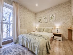 - Спальня выполнена в нежных тонах, что создает атмосферу уюта и спокойствия. Окно в пол с французским болконом, выходит на теннистый сквер. Никаких городских застоек!!! Роскошную понараму ничего не загораживает.