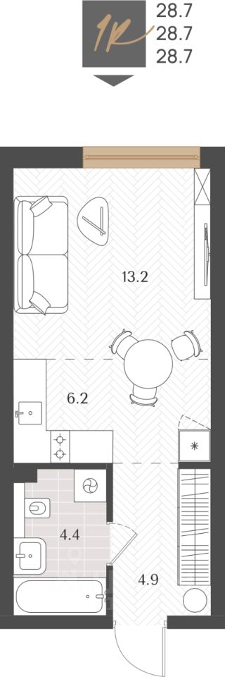 28,7 м²