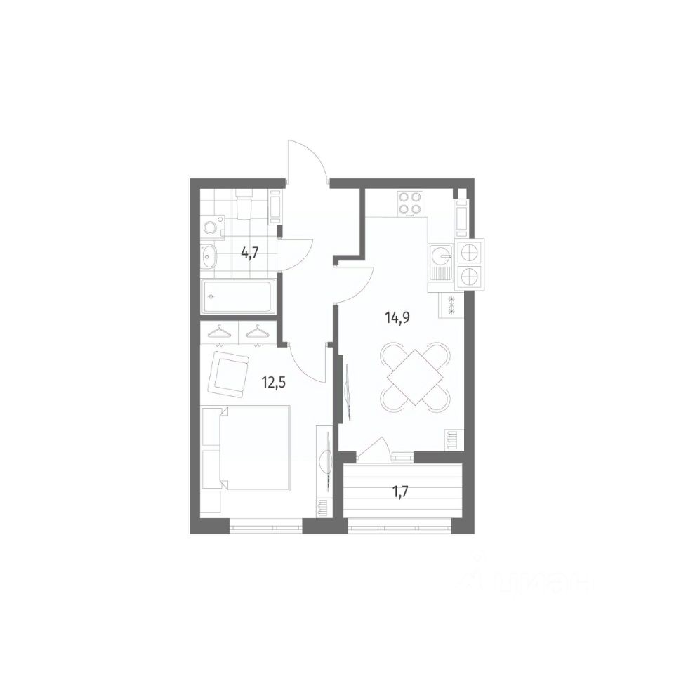 в Дом на Красной от компании ГК "ТРЕСТ". Площадь кухни 14.9 м². Жилой комплекс комфорт-класса "Дом на Красной" расположен в Центральном районе Калининграда на пересечении улиц Красная и Псковская. Жилой комплекс включает в себя два дома высотой 8 этажей. Срок сдачи намечен на 4 квартал 2026 года.