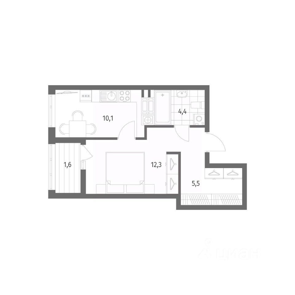 в Дом на Красной от компании ГК "ТРЕСТ". Площадь кухни 10.1 м². Жилой комплекс комфорт-класса "Дом на Красной" расположен в Центральном районе Калининграда на пересечении улиц Красная и Псковская. Жилой комплекс включает в себя два дома высотой 8 этажей. Срок сдачи намечен на 4 квартал 2026 года.
