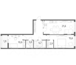 в Дом на Красной от компании ГК "ТРЕСТ". Площадь кухни 21.6 м². Жилой комплекс комфорт-класса "Дом на Красной" расположен в Центральном районе Калининграда на пересечении улиц Красная и Псковская. Жилой комплекс включает в себя два дома высотой 8 этажей. Срок сдачи намечен на 4 квартал 2026 года.