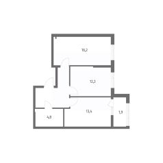 в Дом на Красной от компании ГК "ТРЕСТ". Площадь кухни 16.2 м². Жилой комплекс комфорт-класса "Дом на Красной" расположен в Центральном районе Калининграда на пересечении улиц Красная и Псковская. Жилой комплекс включает в себя два дома высотой 8 этажей. Срок сдачи намечен на 4 квартал 2026 года.