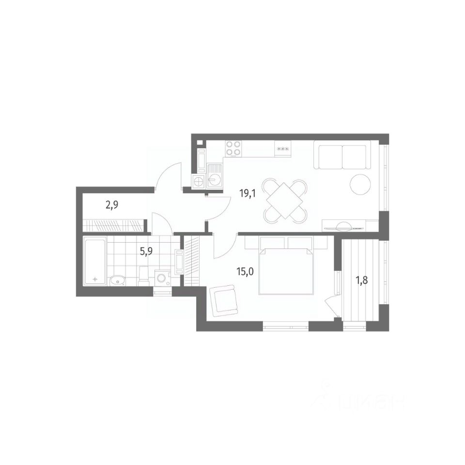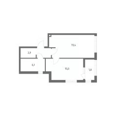 в Дом на Красной от компании ГК "ТРЕСТ". Площадь кухни 19.1 м². Жилой комплекс комфорт-класса "Дом на Красной" расположен в Центральном районе Калининграда на пересечении улиц Красная и Псковская. Жилой комплекс включает в себя два дома высотой 8 этажей. Срок сдачи намечен на 4 квартал 2026 года.
