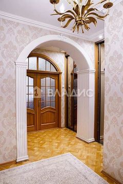 Квартира общей площадью 125 кв м , комнаты 20+20 и большой зал 35 кв м. Кухня -16 кв м с встроенной итальянской мебелью. Хороший вид во двор. Из спальни выход на застекленную лоджию. Отдельная просторная гардеробная. В санузле два окна с видом на зеленый массив. Отдельный гостевой туалет. Кондиционеры. Камин. Пол - натуральное дерево (дуб, ясень). Все межкомнатные двери из дубового массива.
