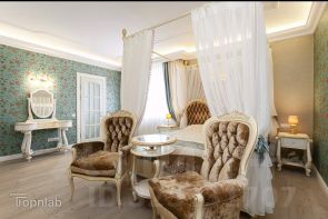 спальня с Итальянской мебелью площадью 22 кв.м., с примыкающим санузлом 14 кв.м. и просторной гардеробной 18,5 кв.м. станет вашим личным уголком уюта и релаксации.