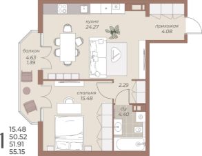 Продаётся 1-комнатная квартира в строящемся доме (Дом 1), срок сдачи: IV-кв. 2027, общей площадью 55.15 кв.м., на 3 этаже. Новый жилой комплекс "ПИЛЛАУ" от застройщика "КПД-Калининград" расположен по адресу: Калининградская обл., г. Балтийск, ул. Артиллерийская.