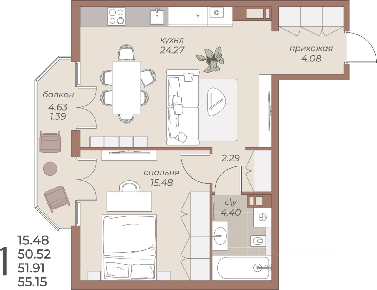 Продаётся 1-комнатная квартира в строящемся доме (Дом 1), срок сдачи: IV-кв. 2027, общей площадью 55.15 кв.м., на 2 этаже. Новый жилой комплекс "ПИЛЛАУ" от застройщика "КПД-Калининград" расположен по адресу: Калининградская обл., г. Балтийск, ул. Артиллерийская.