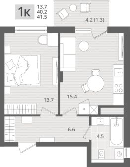 Количество однокомнатных квартир - 289 шт., двухкомнатных - 63 шт., трехкомнатных - 1 шт.;