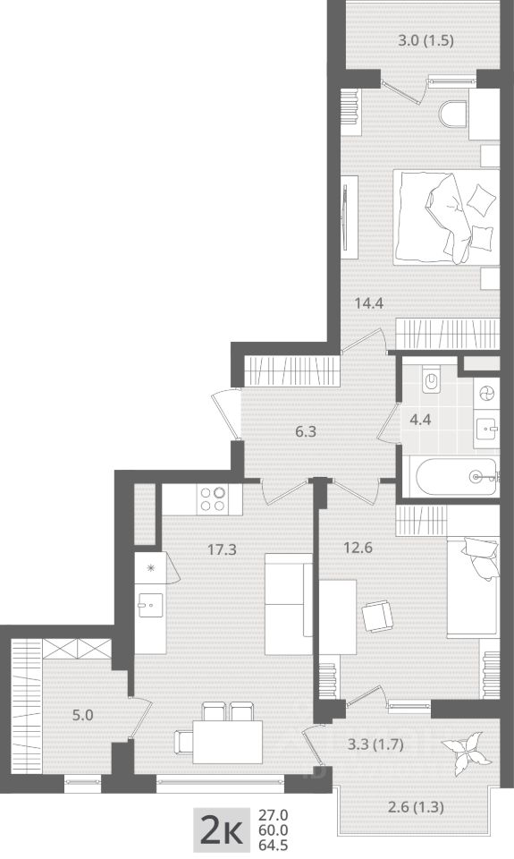 Квартира 20. в новом жилом комплексе "МOрe" от строительной компании "Меркурий".