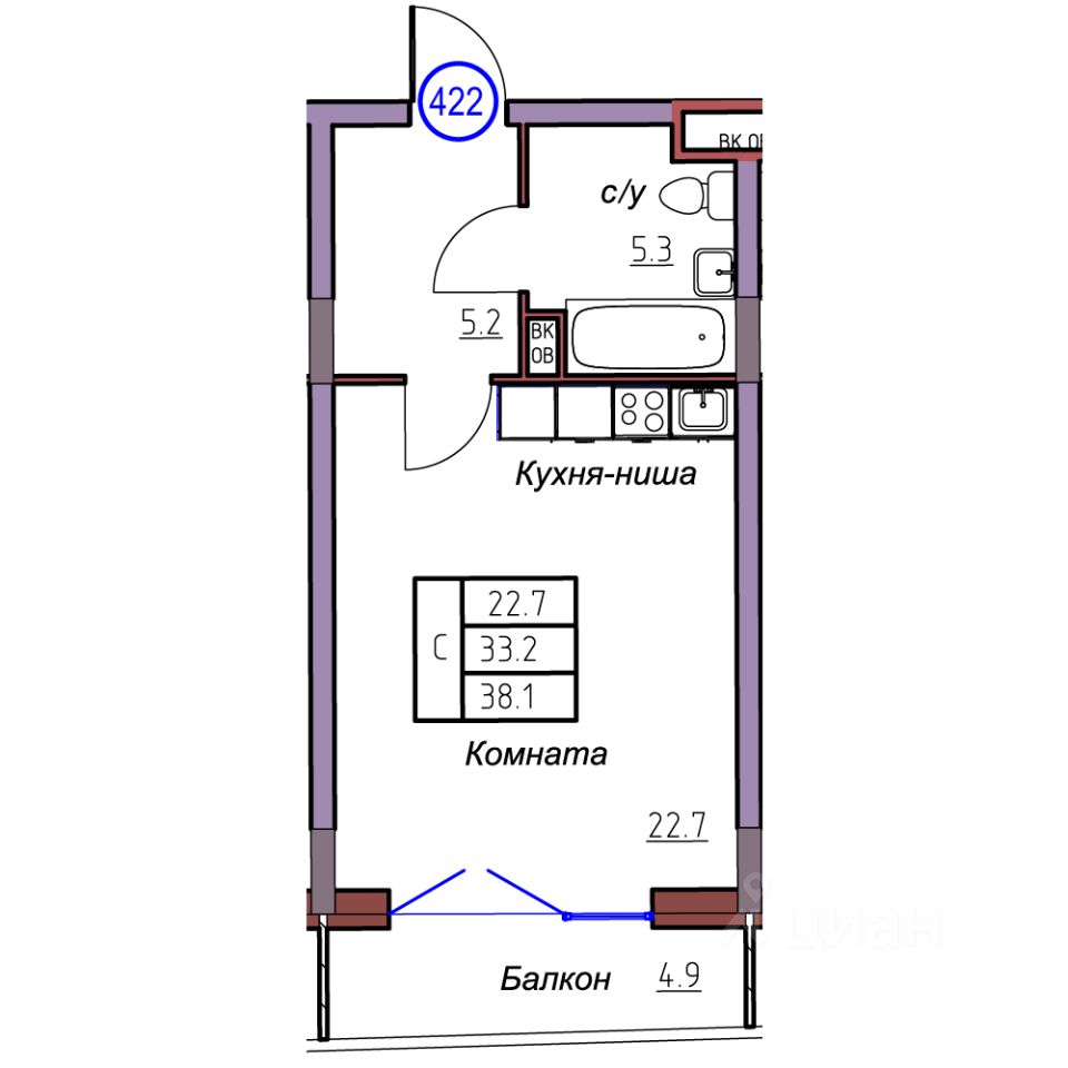 Общая площадь38,1 м²