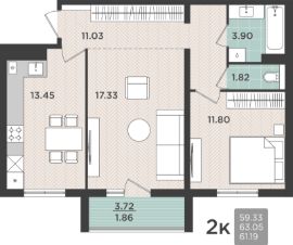Продаётся 2-комнатная квартира в строящемся доме (Дом 15), срок сдачи: II-кв. 2026, общей площадью 63.05 кв.м., на 1 этаже.