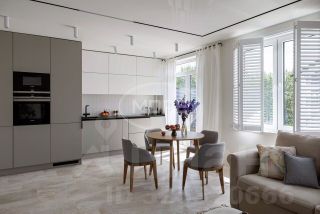 Встроенная кухонная немецкая техника Siеmеns: посудомоечная машина, варочная поверхность, духовка, микроволновая печь; встроенный холодильник Sаmsung; итальянская вытяжка Еliса; современная встроенная кухня с использованием фурнитуры Вlum. На кухне установлена немецкая раковина и кран от Вlаnсо с системой очистки питьевой воды. Вся техника привезена из Европы под заказ