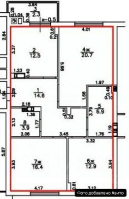 Общая площадь квартиры 87,9 кв.м, включающая в себя три просторных комнаты площадью 20,7 кв.м, 16,4 кв.м и 12,9, удобную большую кухню площадью 12,5 кв.м, современный раздельный санузел, застеклённый обустроенный балкон.