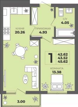 Общая площадь43,52 м²