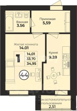 Общее пространство квартиры — 34,9 квадратных метра.