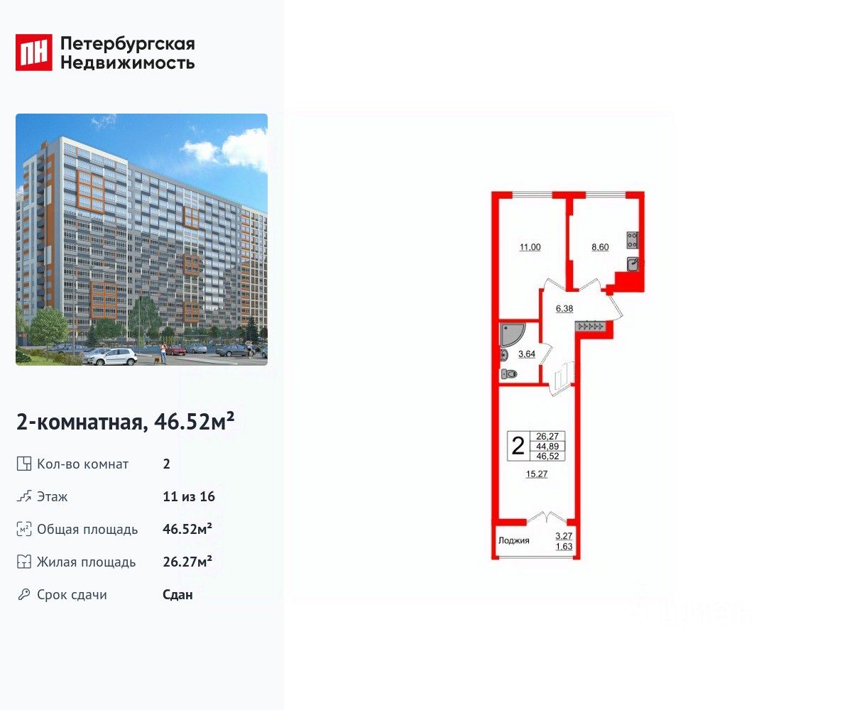 Продается уютная 2-комнатная квартира в жилом комплексе "Стерео" в Московском районе. Удобная, классическая планировка, кухня 8.6 м², вместительная прихожая 6.38 м². Общая площадь квартиры - 46.52 м², жилая 26.27 м², высота потолка 2.7 м. Квартира продается c черновой отделкой. Что особенного в ЖК "Стерео"? • Транспортная доступность (школа, детский сад, магазины, поликлиники, остановка общественного транспорта) • Экологичность и здоровье (многоступенчатая очистка воды, аппарат с артезианской водой) • Благоустройство по принципу "Дворы без машин", детские и спортивные площадки по возрастам • Индивидуальный дизайн проект холлов • Рациональные и Просторные планировки • Квартиры с чистовой отделкой Заезжай и живи