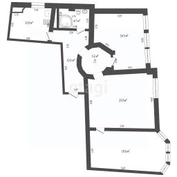 Оригинальная планировка! Квартира светлая, теплая, очень уютная. Выполнен авторский дизайнерский ремонт с использованием качественных дорогостоящих материалов. Пол комнаты -паркет, кухня и коридор ламинат. В санузле плитка, теплый пол, установлена фирменная сантехника Villеrоy&Восh.