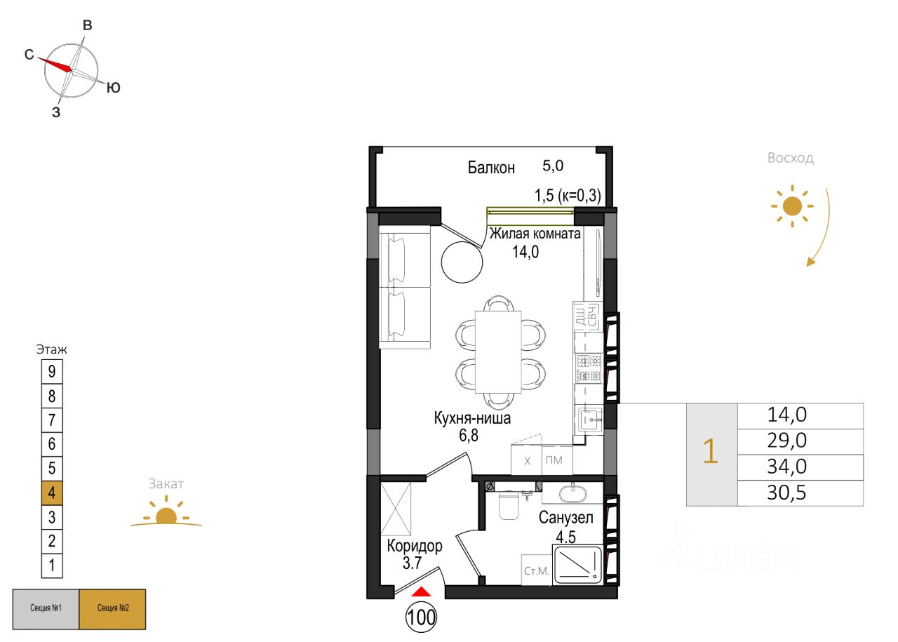 Этаж4 из 9