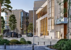 Элегантный дизайн: фасад здания отделан элитными материалами, такими как клинкерная плитка и медные панели, выдерживающие испытание временем.