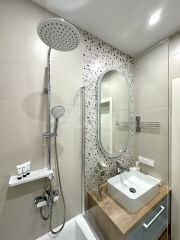 Kpовать c подъёмным мeхaнизмoм (допoлнитeльноe меcтo хранения) и ортопедическим матрасом 27 см Район. Смарт ТВ. Встроенный холодильник с морозильной камерой, стиральная машина с функцией сушки, фильтры для воды, микроволновка, чайник; кофеварка с возможностью заварить как капсульный, так и молотый кофе.