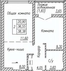 - Просторная кухня-гостиная 19,6 м²