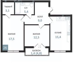 Продаётся 2-комнатная квартира в сданном доме (Московская, 16Ак3 (3 этап)), срок сдачи: IV-кв. 2025, общей площадью 64.3 кв.м., на 1 этаже. Новый жилой комплекс "Балтийская гавань" от Специализированного застройщика "Авангардное" расположен по адресу: г. Балтийск, ул. Сенявина.