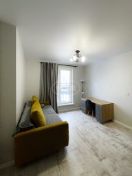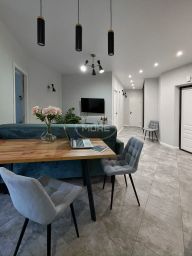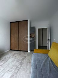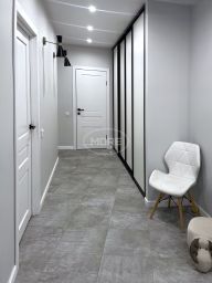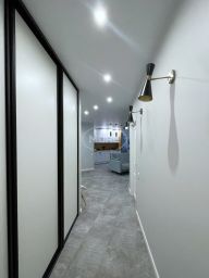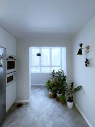 сделана очень комфортная перепланировка - кухня, коридор, прихожая и балкон соединены в одно общее пространство. За счет этого квартира смотрится стильно и просторно