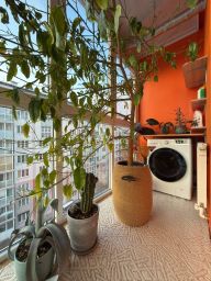 Лоджия с панорамным остеклением с выходом из кухни.