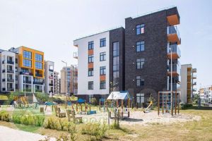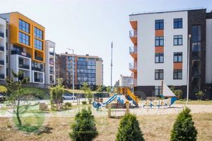 -Двор благоустроен , озеленен, хорошо освещен , газоны, широкие подъездные пути, удобные тротуары, велосипедные дорожки .