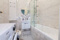 Качественный современный ремонт. Удобная европланировка общая площадь квартиры 35 кв.м, кухня-гостиная 17.55 кв.м, спальня 10.15 кв.м, санузел 3,5 кв.м совмещен с качественной сантехникой и плиткой. В квартире предусмотрена просторная лоджия с панорамным остеклением, с которой открывается потрясающий вид. Напольное покрытие ламинат.