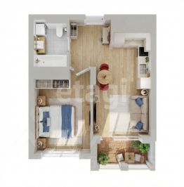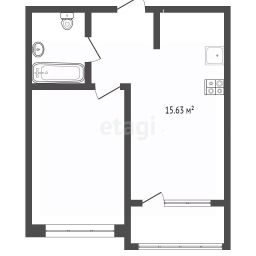 Планировка "Евро-2": Кухня-гостиная 15,63 м² с выходом на лоджию и изолированная спальня 13,28 м².