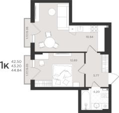 Продаётся 1-комнатная квартира в строящемся доме (Дом 1), срок сдачи: IV-кв. 2026, общей площадью 43.2 кв.м., на 4 этаже. Многоквартирный жилой дом комфорт-класса "Шелест" расположен в Светлогорске на улице Песочная в окружении высоких сосен является настоящим уголком отдыха от городской суеты и шума.