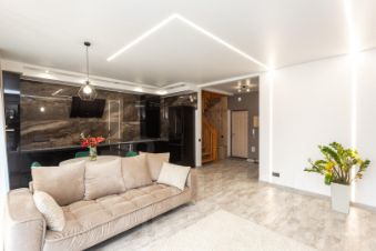 Двухуровневая квартира с дизайнерским ремонтом расположена на 3 и 4 этажах.