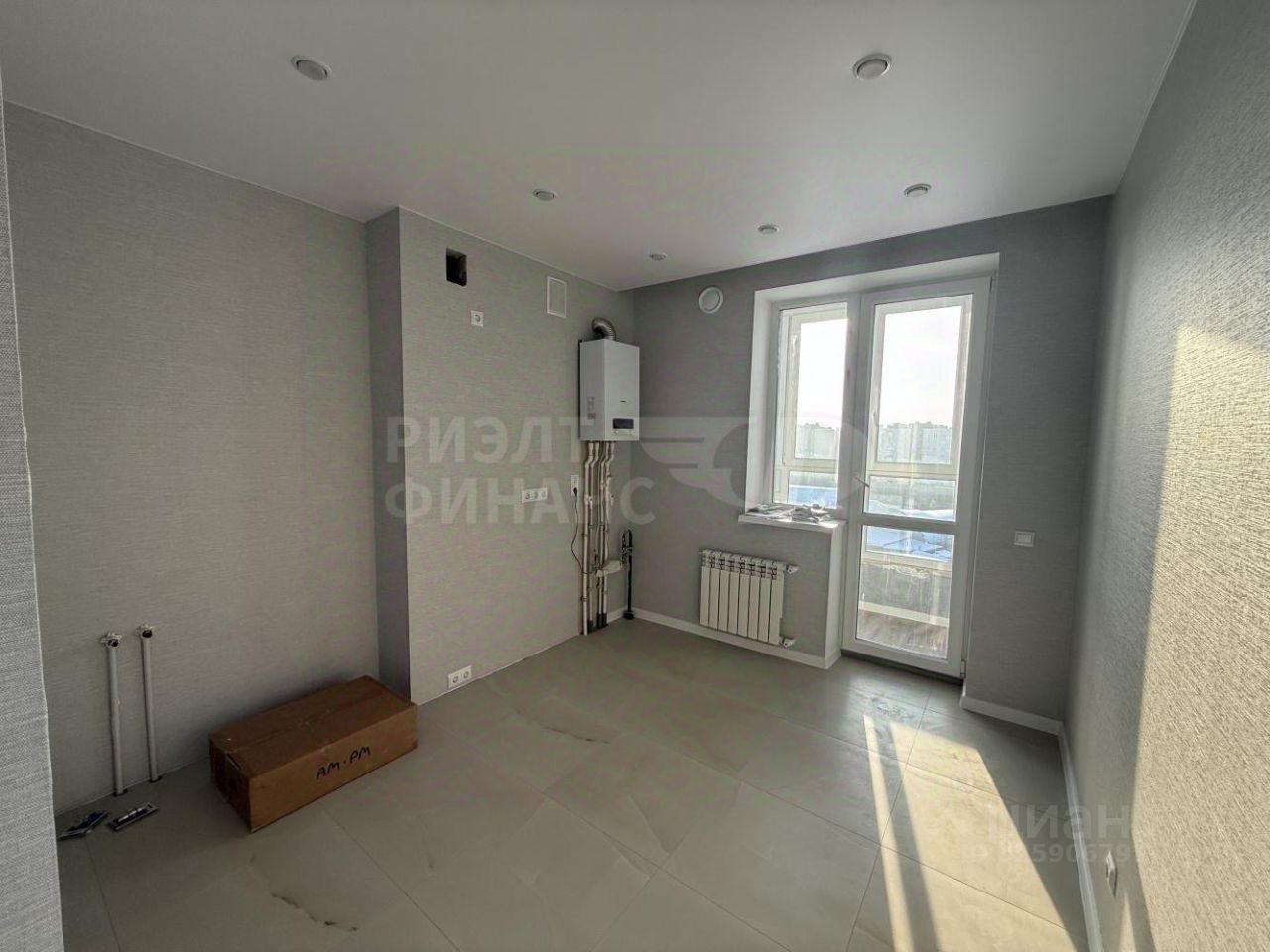 Комната просторная, за счет панорамного остекления, квартира очень светлая
