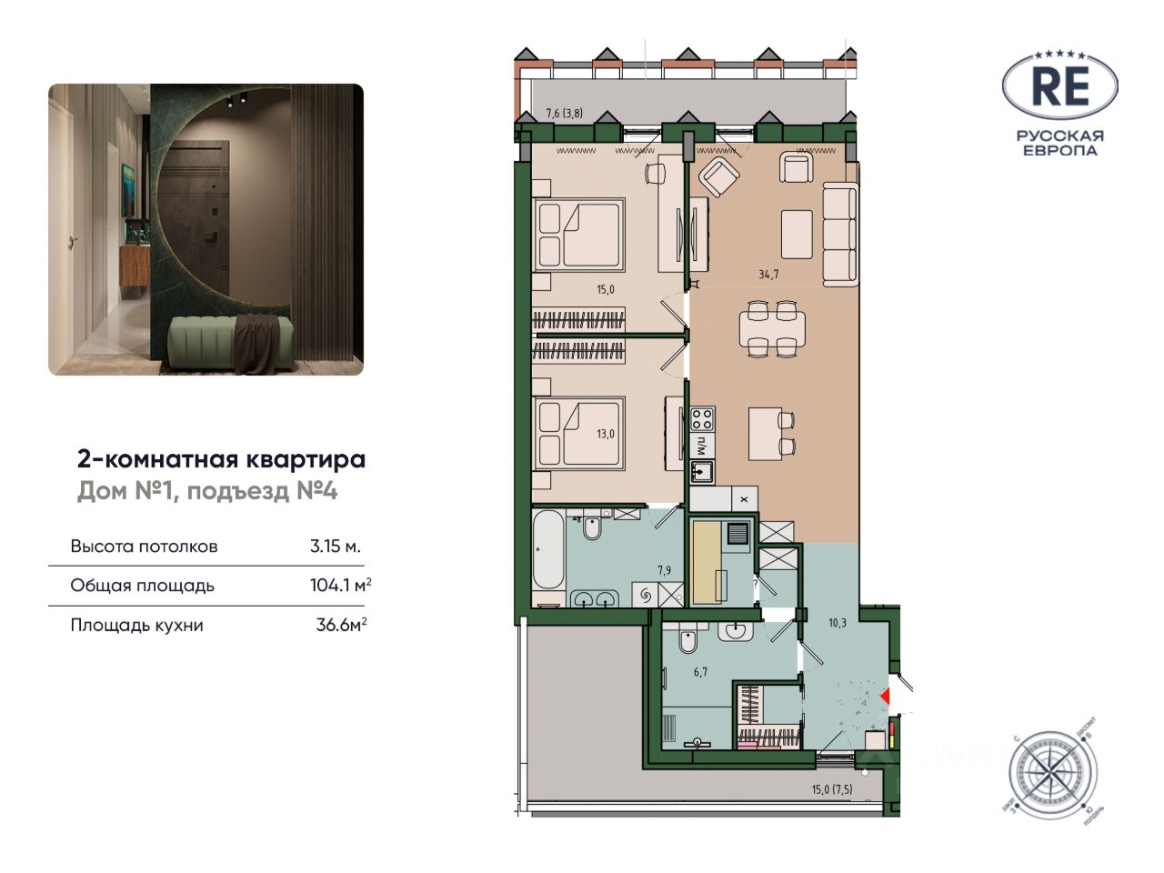 Общая площадь104,1 м²