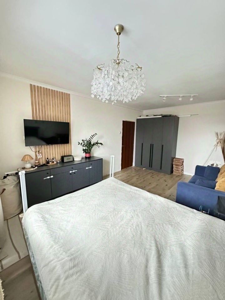 В квартире сделан ремонт, разведена новая проводка по всей квартире, новые выключатели и розетки установлены, в коридоре на полу выложена плитка, в комнате пол кварцвинил, убран оконный блок, сделан подоконник из дерева. Балкон утеплен, пол кварцвинил, покрашен стены. Батареи чугунные. Потолок побелен. Кухня требует косметического ремонта. Установлены фильтры на воду.