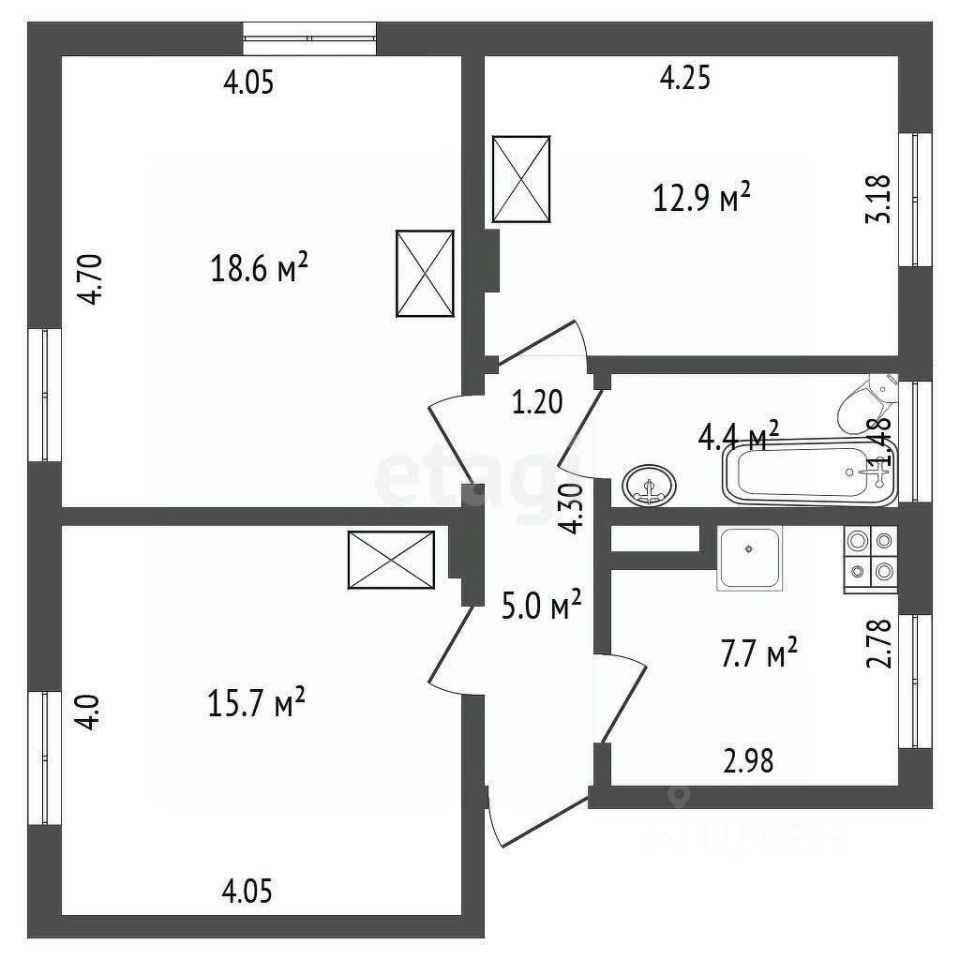 64,3 м²