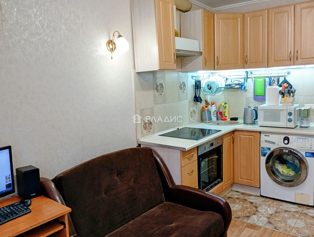 Общая площадь квартиры составляет 31 кв. м, из которых 13,2 кв. м приходится на жилую площадь, а 12,1 кв. м — на кухню, где достаточно места для приготовления пищи и приема гостей.