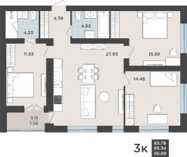 Продаётся 3-комнатная квартира в строящемся доме (Дом 2 очередь 8), срок сдачи: IV-кв. 2026, общей площадью 85.34 кв.м., на 6 этаже. Жилой квартал "Невский парк" - один из самых зеленых жилых кварталов Калининграда.