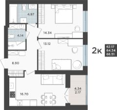 Продаётся 2-комнатная квартира в строящемся доме (Дом 2 очередь 8), срок сдачи: IV-кв. 2026, общей площадью 64.34 кв.м., на 3 этаже. Жилой квартал "Невский парк" - один из самых зеленых жилых кварталов Калининграда.