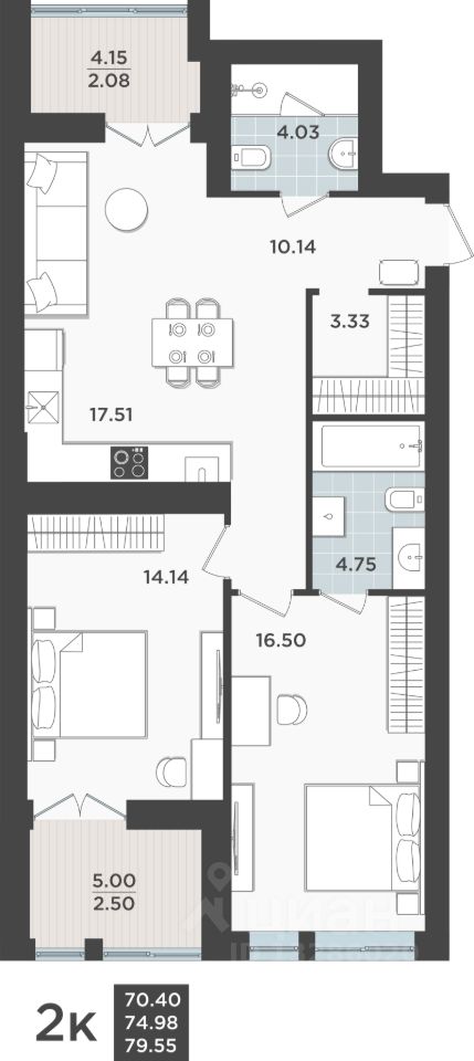 Продаётся 2-комнатная квартира в строящемся доме (Дом 2 очередь 8), срок сдачи: IV-кв. 2026, общей площадью 74.98 кв.м., на 2 этаже. Жилой квартал "Невский парк" - один из самых зеленых жилых кварталов Калининграда.
