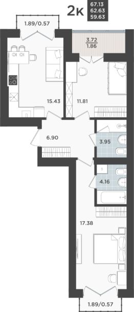 Продаётся 2-комнатная квартира в строящемся доме (Дом 1 очередь 8), срок сдачи: IV-кв. 2026, общей площадью 62.63 кв.м., на 10 этаже. Жилой квартал "Невский парк" - один из самых зеленых жилых кварталов Калининграда.